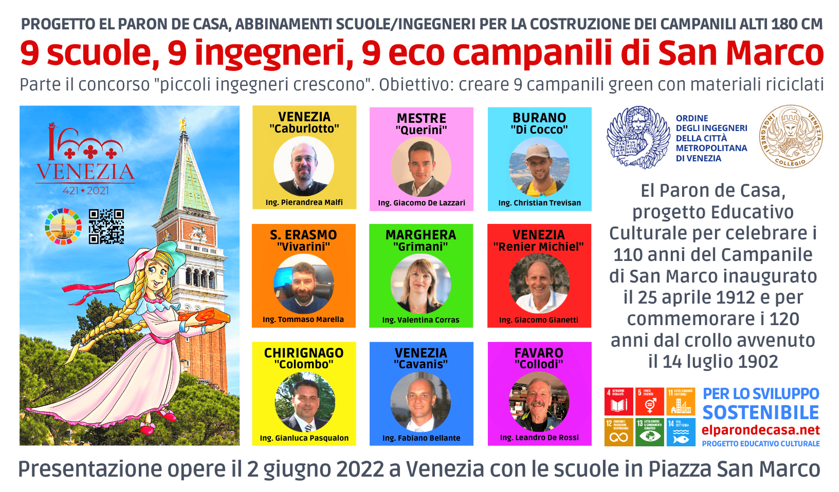 “El Paron de Casa #Venezia1600 Campanile di San Marco” è un progetto Educativo Culturale orientato dagli obiettivi di Sviluppo Sostenibile Agenda 2030 che risponde alla Legge 92 del 20 agosto 2019 per l’Educazione Civica nella scuola.