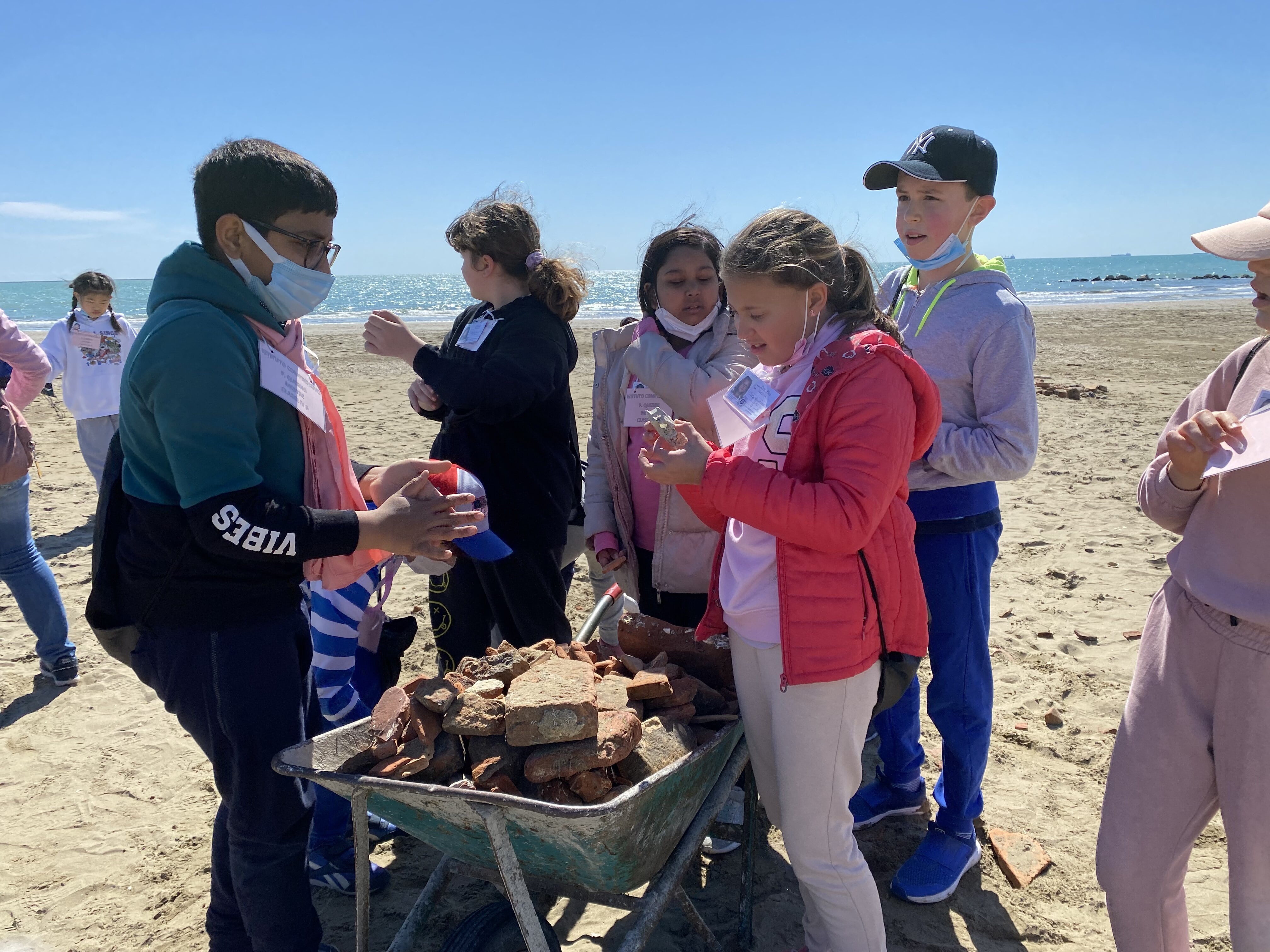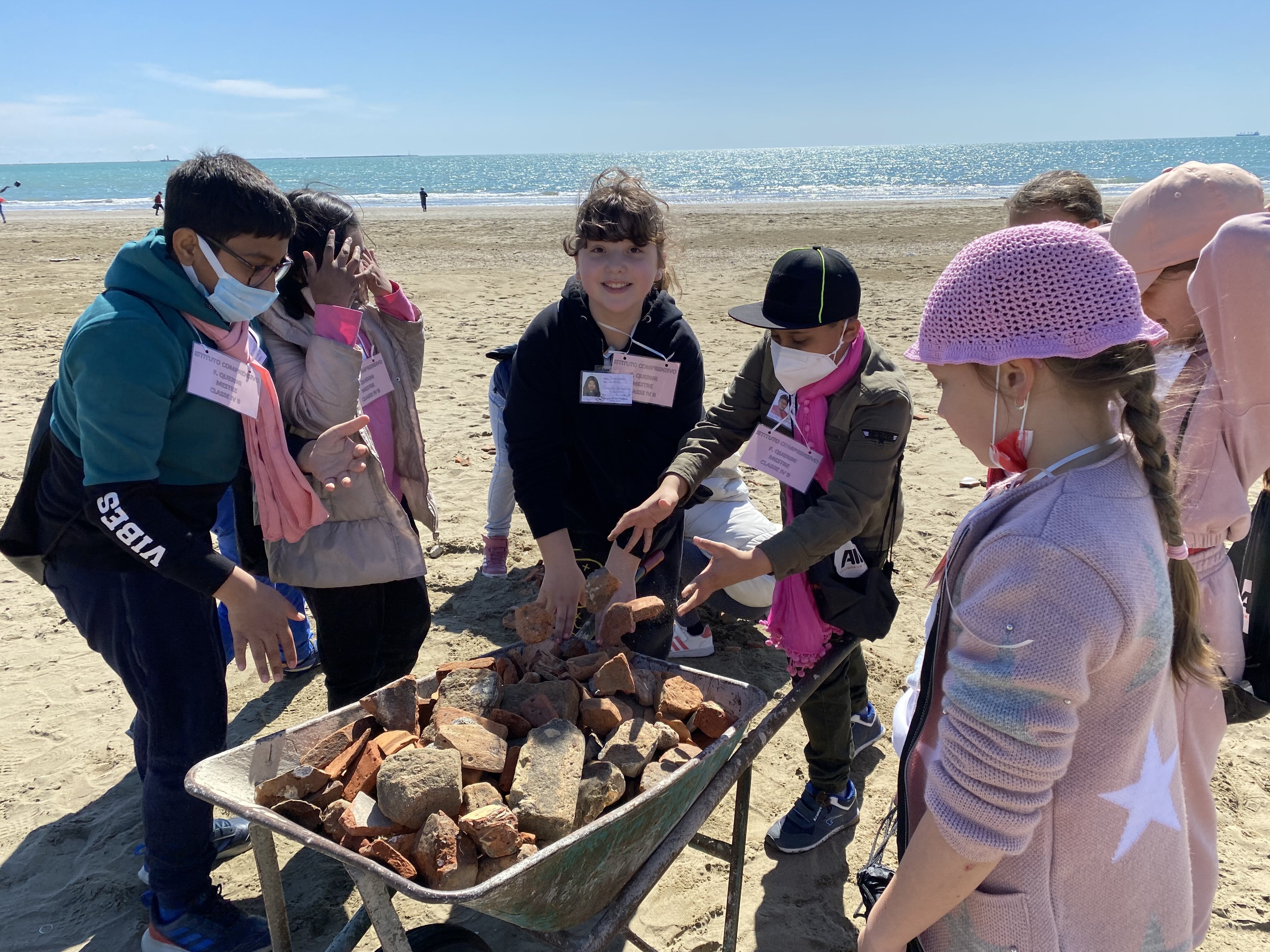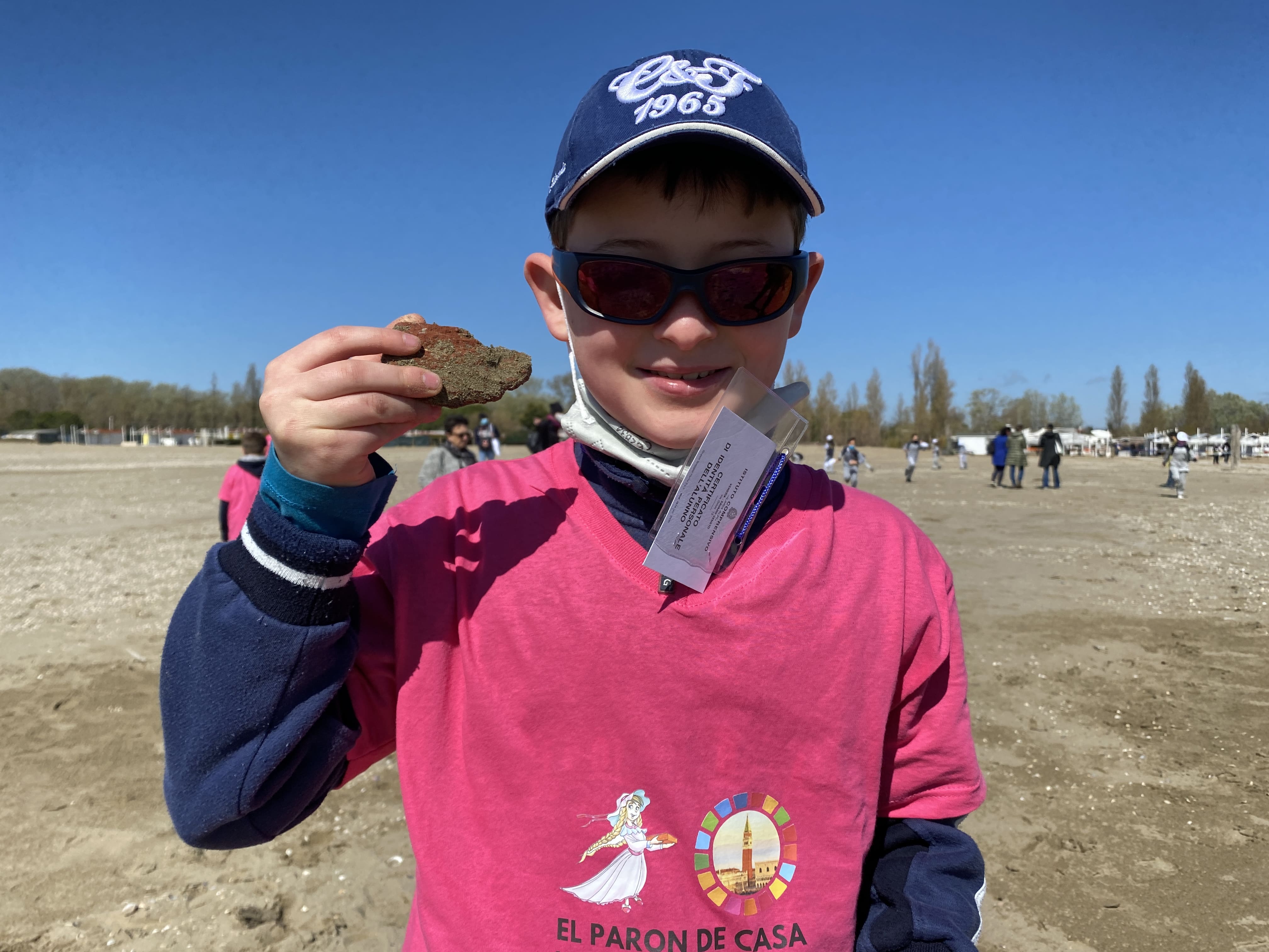 Gli alunni suddivisi per classi – ad ogni scuola è stato abbinato un differente colore – hanno percorso in lungo e in largo un tratto di spiaggia dotato di appositi cartelli informativi per l’educazione allo sviluppo sostenibile disegnati da Valerio Held e Maurizio Amendola. Guidati dai giovani tutor e reporter dell’Istituto Marinelli Fonte Engim Veneto, assieme agli esperti della Soprintendenza e dell’Università di Ca’ Foscari, i bambini hanno raccolto una buona quantità di materiali con i quali realizzeranno 9 mosaici artistici unici nel loro genere.