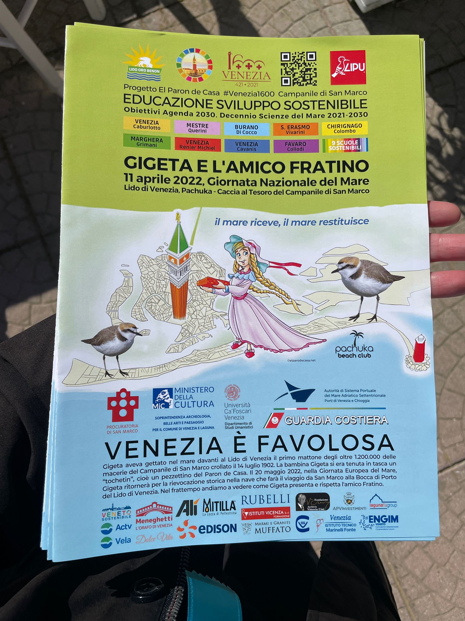 11 aprile, Giornata Nazionale del Mare, a Venezia si è svolto un evento mai visto prima d’ora. 200 “bambini archeologi” di 9 scuole, in rappresentanza di oltre 10.000 “colleghi” di 9 territori del centro storico, isole e terraferma, si sono mobilitati per una speciale Caccia al Tesoro del Campanile di San Marco organizzata presso la spiaggia Pachuka del Lido.