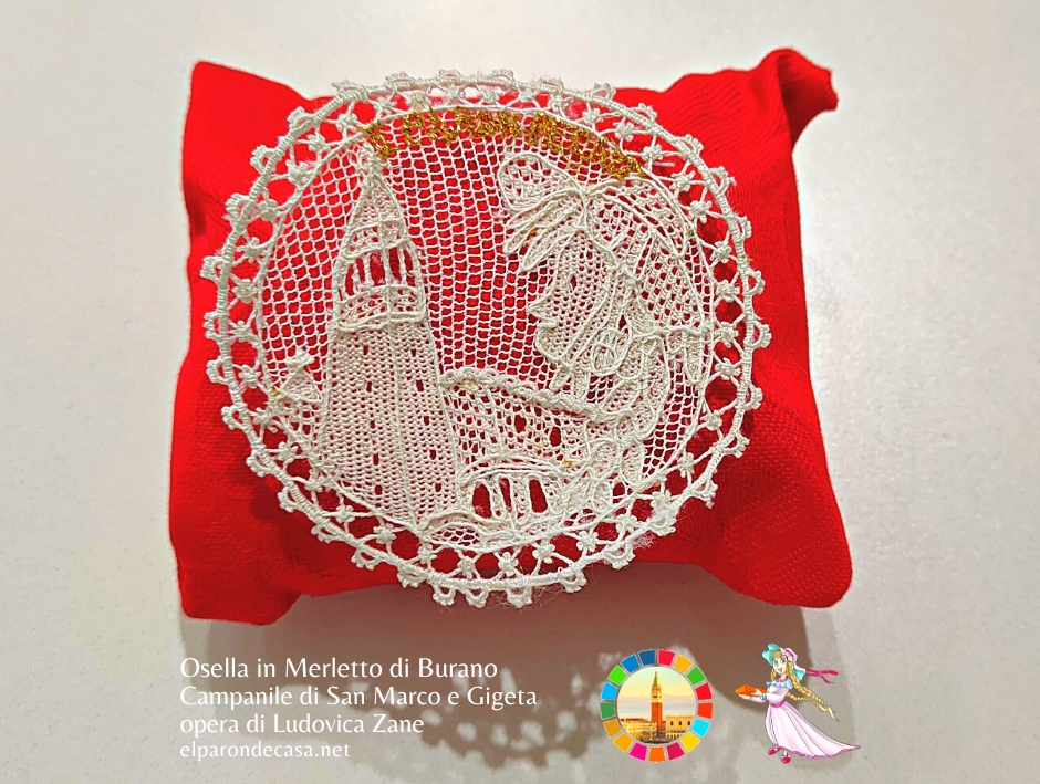 Abbiamo il piacere di presentare l’opera creata da Ludovica Zane (Curriculum) in Merletto di Burano raffigurante il Campanile di San Marco (chiamato con affetto El Paron de Casa) e la bambina Gigeta.