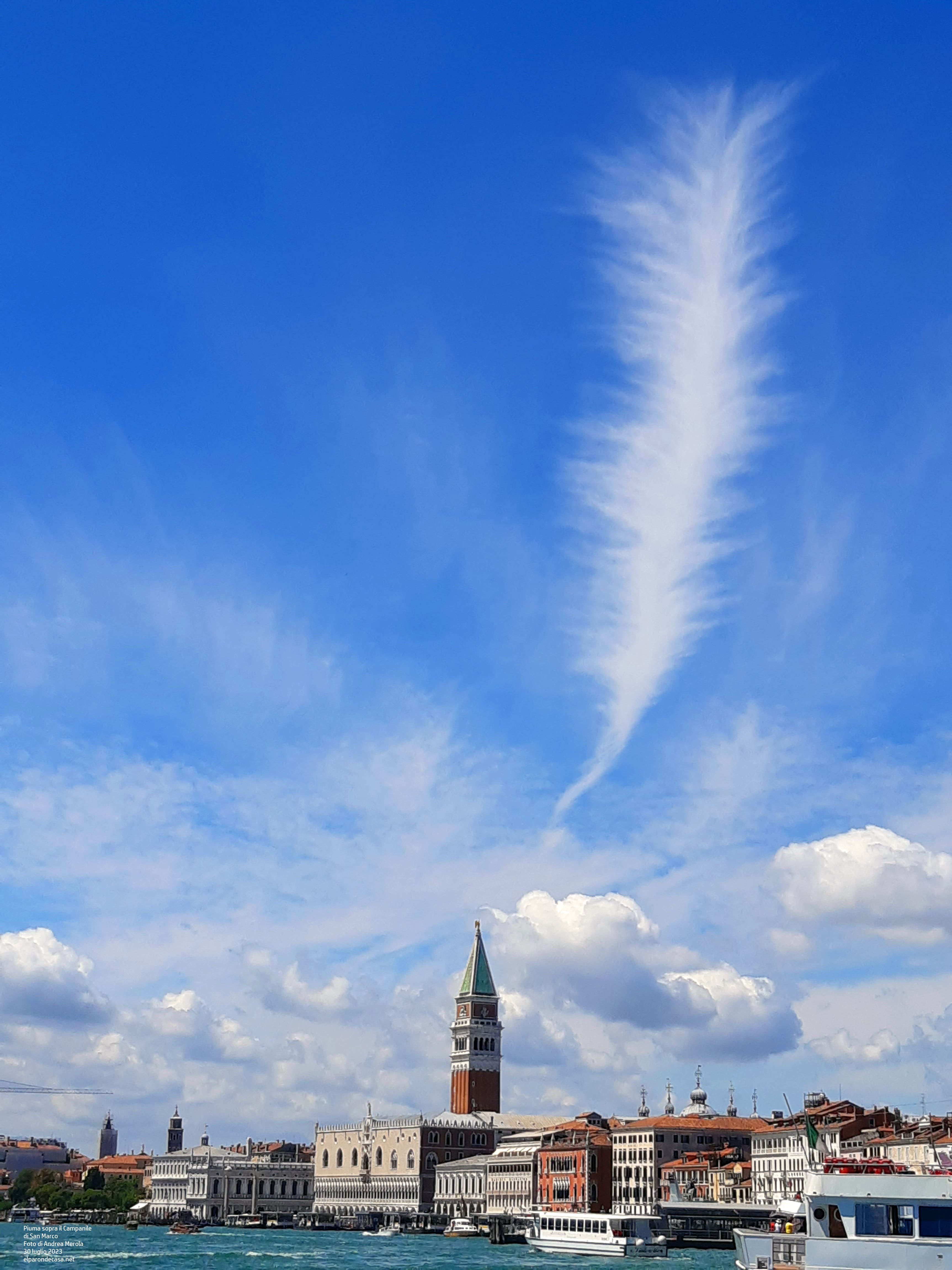 30 luglio 2023, esattamente alle ore 13:17 il celebre fotografo veneziano Andrea Merola coglie la spettacolare immagine della piuma sopra la cuspide del Campanile di San Marco. Si tratta di una nuvola del tipo Cirrus fibratus formata da sottili filamenti bianchi del tutto simili a una piuma.