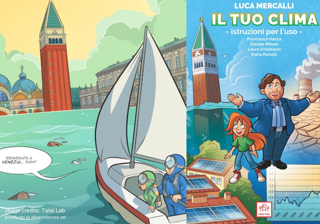 In attesa di potervi svelare la casa editrice con la quale pubblicheremo l’annunciato libro “VENEZIA È FAVOLOSA”, oggi 15 novembre esce una bella opera a fumetti di Luca Mercalli dal titolo “Il tuo clima – Istruzioni per l’uso”. La si può trovare sullo store online di Tatai Lab. Ne diamo notizia perchè il nostro adorabileContinua a leggere “Luca Mercalli racconta il cambiamento climatico con il Campanile di San Marco sommerso dall’acqua alta”